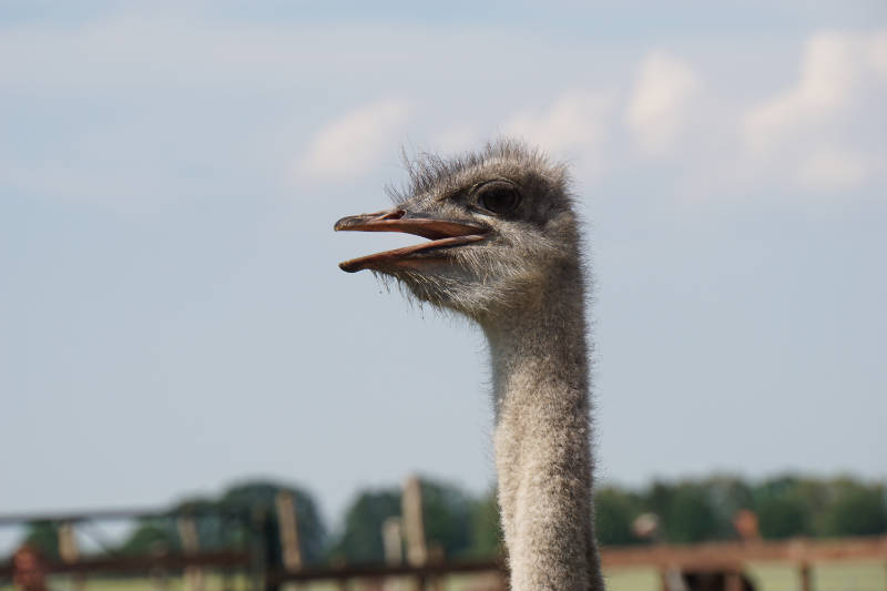 Die Strauße sind manchmal ein bisschen schüchtern oder wollen sich verstecken. Dann stecken sie ihren Kopf in den Sand.