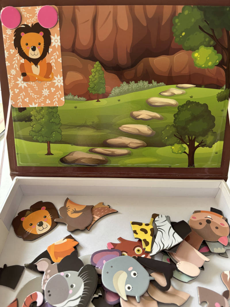 Magneto Zoo ist eine Magnetspielbox mit tierischen Puzzelvergnügen. Die hochwertig und stabil verarbeite Schachtel gefällt mit schon von Außen sehr gut. Süße kindgerecht gestaltete Tiere gucken einen vom Deckel aus an.