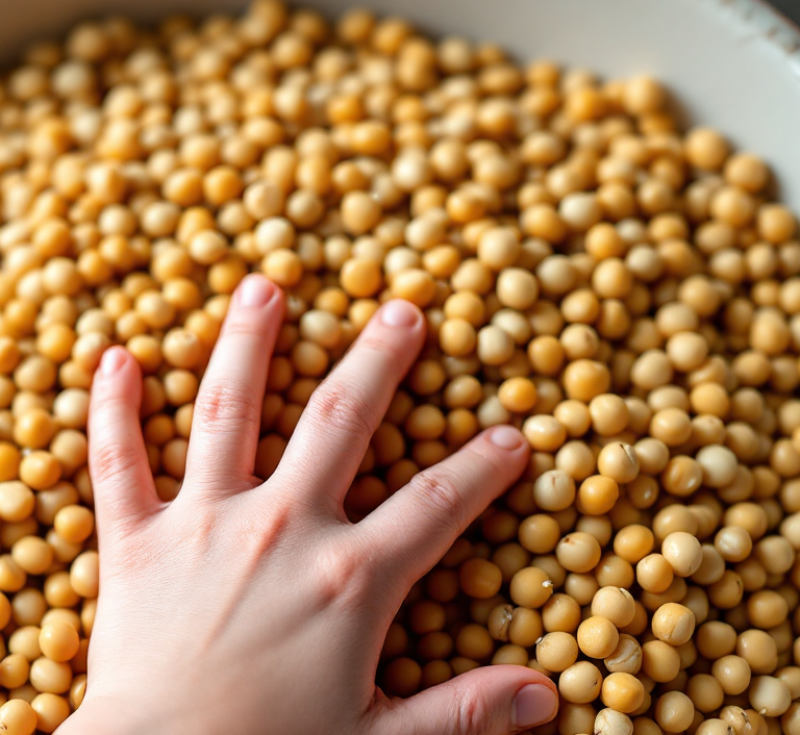 Wir füllen eine Schüssel mit getrockneten Erbsen. Es bleibt während des gesammten Ablaufen möglichst immer die gleiche Schüssel (die Erbsen müssen allerdings im Laufe der Zeit mal erneuert werden).
